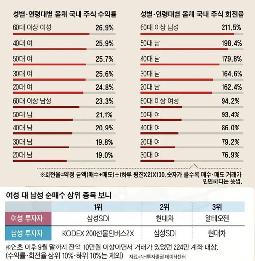 증시가 뜨겁게 불타오르면서 올해에도 연령별 수익률과 회전율이 공개되었습니다.